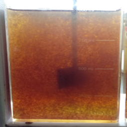 Jar test before P8200L application: low efficiency of floc formation, with light flocs of low density and low settling speed