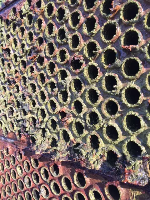 The following images show the comparison of heat exchangers when treated with a competitive, PO4-based technology during the 2015 turnaround and ChemTreat FlexPro technology during the 2018 turnaround cycle.