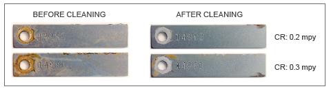Corrosion coupon results for mild steel coupons placed at the heat exchanger exit