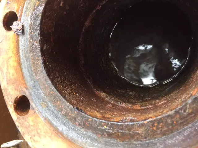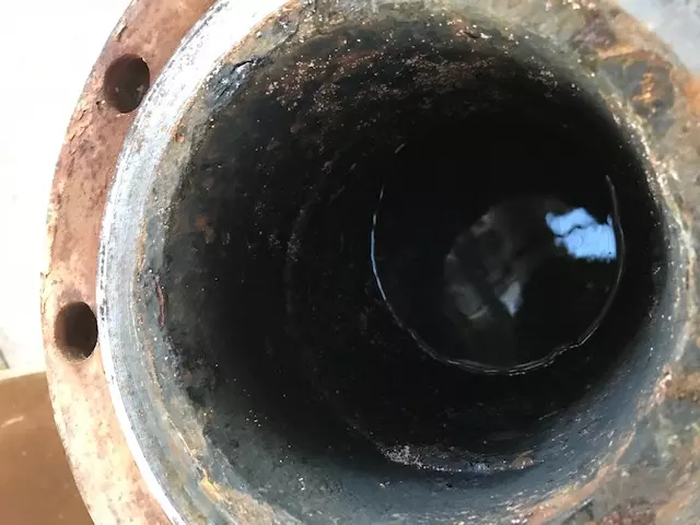 A closeup of the inlet piping three years after FlexPro treatment began.