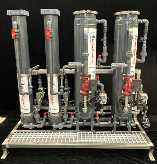 Additionally, a fourth feeder was included in the skid for supplementing azole-based corrosion inhibitor. An ORP probe-based biocide dosing capability was provided to meet the customer’s treatment needs.
