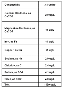 These analytical reports show the presence of various impurities in a 600-pound ethylene unit during standard operations versus a condenser leak. It is important to note the conductivity showed very little change during the condenser leak. This facility used ultra-low-level wet-based testing to track impurities but did not have sodium monitoring in place. Using instrumentation to monitor sodium may have caught the condenser leak earlier.