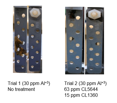 ChemTreat performed a dispersion study (screening test) in our laboratory to test the efficacy of our FlexPro® CL5644 and CL1360 products, which contain no phosphate, over the previous phosphate-based treatment used by the plant.