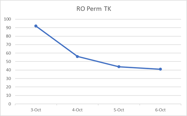 During the same inspection, the RO permeate tank conductivity decreased by 51 µmhos in just three days, showing the positive impact of repairs on water production capability.