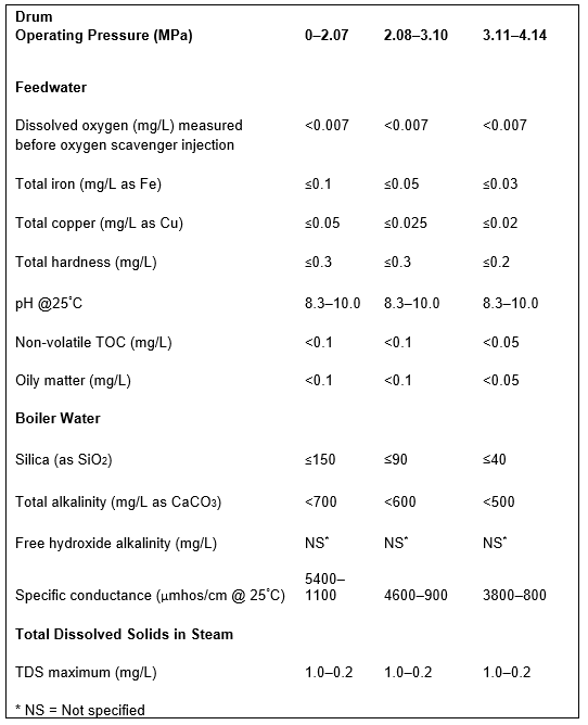 Table 1. Guidelines for impurity limits in low-pressure industrial boilers. This data was extracted from Table 1 in Reference 3. The booklet contains many additional details regarding industrial boiler water guidelines.